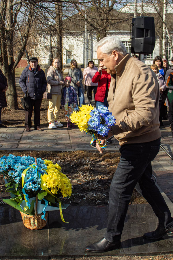 Після урочистостей та хвилини мовчання на знак вшанування пам’яті Тараса Григоровича Шевченка присутні поклали квіти до його пам’ятника, а студенти Луганського національного університету імені Тараса Шевченка встановили кошик із жовто-блакитними квітами – символічними кольорами нашої держави.