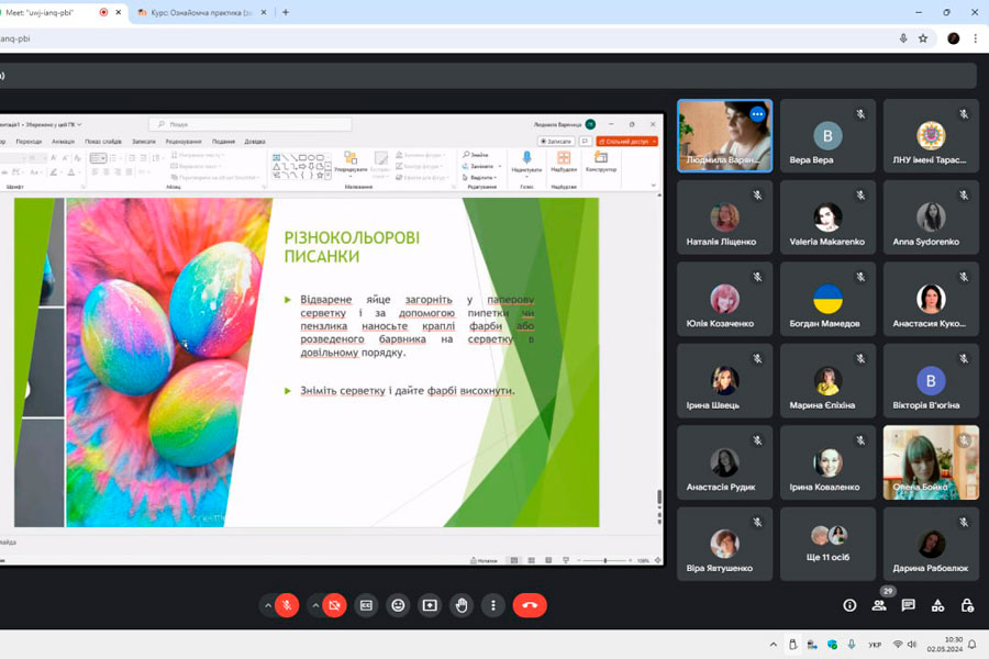 Презентацію представлено кандидатом педагогічних наук, доцентом кафедри розвитку дитини раннього та дошкільного віку Людмилою Варяницею, яка розповіла історію розвитку писанкарства та про його традиції. На заході були присутні викладачі та здобувачі різних структурних підрозділів університету. Гості познайомилися із символікою кольорів та видами писанок.