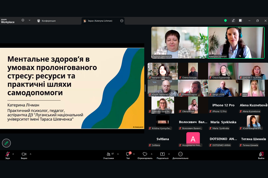 Катерина Лічман, здобувачка третього (освітньо-наукового) рівня вищої освіти, спеціальність I10 Соціальна робота та консультування ДЗ «Луганський національний університет імені Тараса Шевченка» розкрила тему «Ментальне здоров’я в умовах пролонгованого стресу: ресурси та практичні шляхи стабілізації ментального стану»;