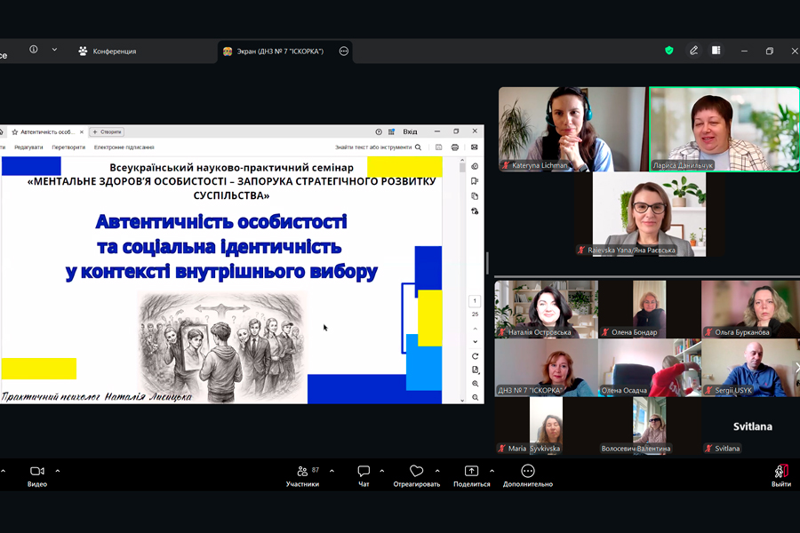 Наталія Лисицька, практичний психолог КЗ Лисичанський дошкільний навчальний заклад (ясла-садок) № 7 «Іскорка», практичний психолог, магістр, випускниця спеціальності 231 «Соціальна робота» ДЗ «Луганський національний університет імені Тараса Шевченка» поділилася практичними порадами у виступі «Автентичність особистості та соціальна ідентичність у контексті внутрішнього вибору»