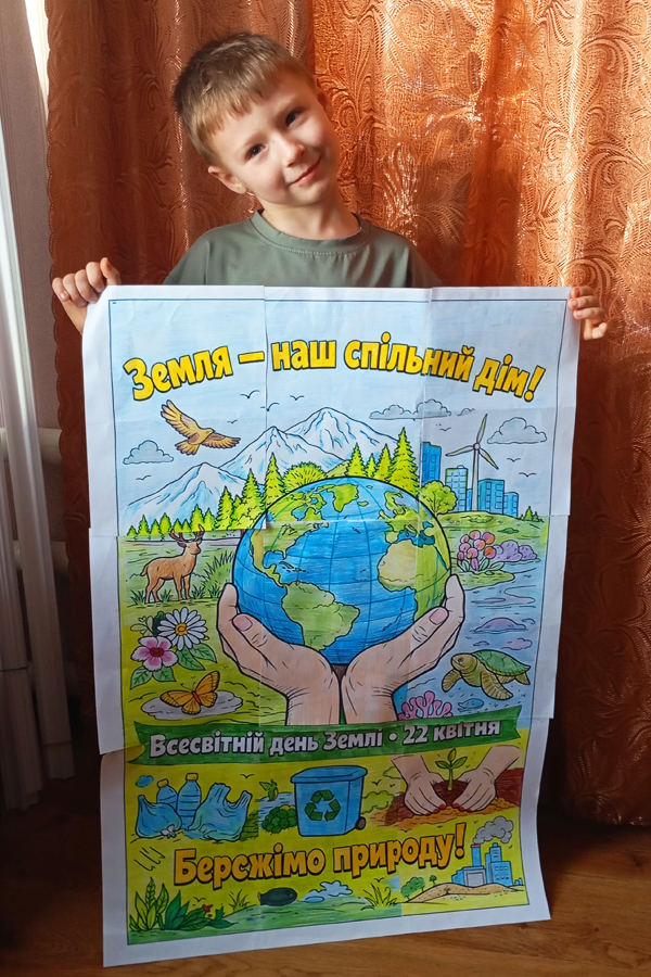 На конкурс представлені творчі роботи, у яких яскраві образи поєднані з лаконічним текстом, аби миттєво зачепити погляд і передати ідею збереження унікальності планети Земля. Відзначені найкращі роботи здобувачів освіти спеціальності «Початкова освіта. Українська мова і література».