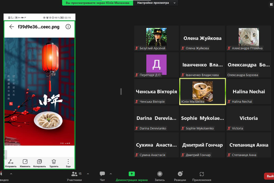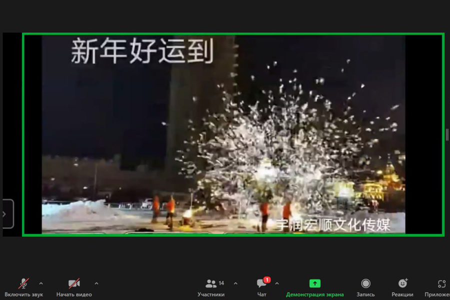 Малахова Юлія Володимирівна ознайомила присутніх з особливостями святкування Нового року у Китаї, розказала про життя у Китаї в період святкування, подарунки та новорічний декор. Традиційні новорічні феєрверки у КНР пов’язані із особливою легендою про чудовисько Нянь.