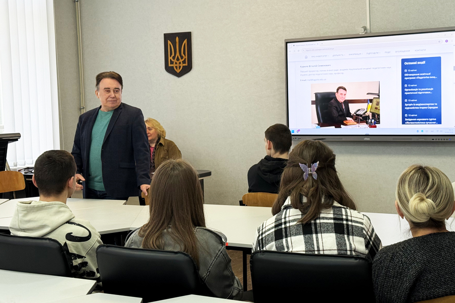 Під час зустрічі Віталій Курило поділився власним життєвим і професійним досвідом, розповів про ключові етапи становлення як науковця та управлінця, акцентувавши увагу на важливості наполегливості, саморозвитку та відповідальності у досягненні поставлених цілей.