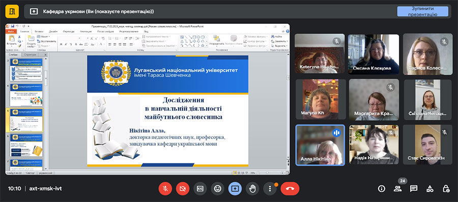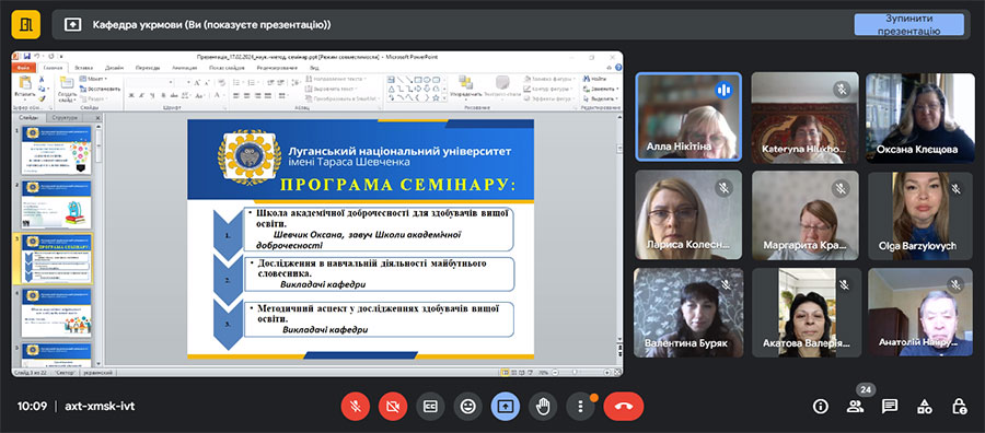 17 лютого відбулася друга сесія науково-методичного семінару «Здобувач освіти: шляхи самоорганізації українського словесника», зокрема для здобувачів вищої освіти першого (бакалаврського) і другого (магістерського) рівнів спеціальності 014.01 «Середня освіта. Українська мова і література».