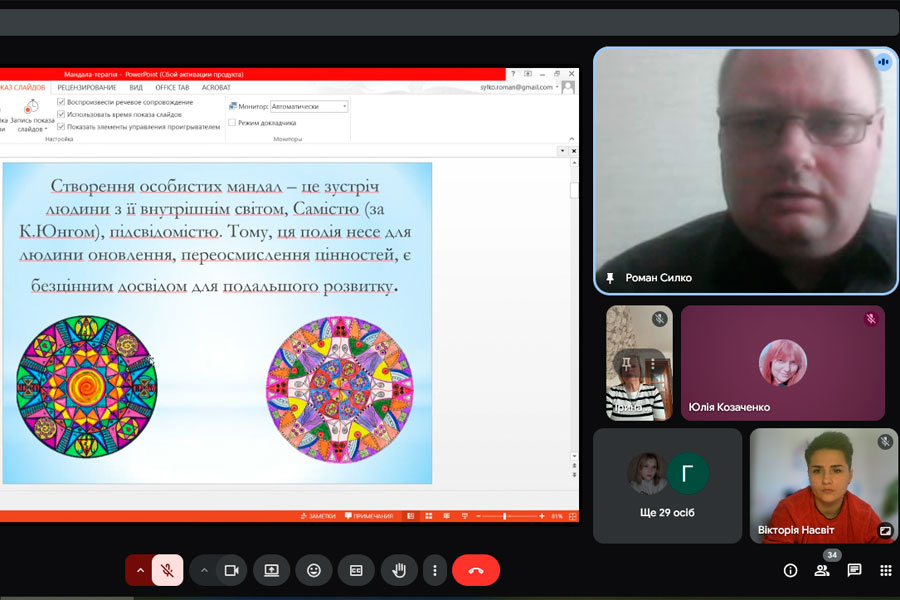 Гостьова лекція проходила під гаслом «Спілкування без слів засобами мистецтва». Під час зустрічі спікер акцентував увагу на важливості комунікації з дітьми через мистецтво, розповів про можливості його використання в педагогічній і терапевтичній практиці. Окрему увагу було приділено мандалотерапії та мульттерапії — сучасним методам, що сприяють гармонізації емоційного стану та розвитку особистості.