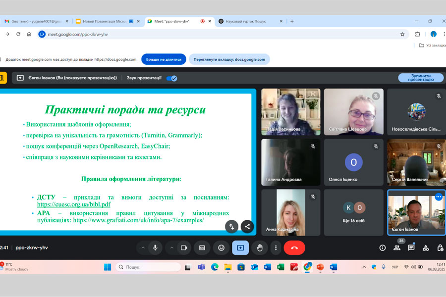 Під час обговорення учасники поділилися власним досвідом наукової діяльності, обговорили виклики, з якими стикаються молоді дослідники, й отримали практичні рекомендації щодо підготовки якісних наукових публікацій.
