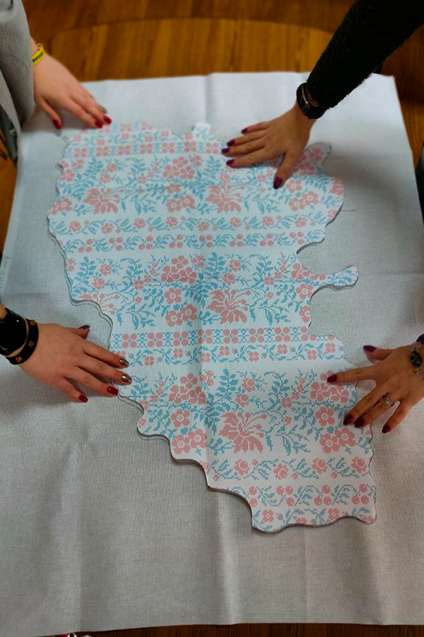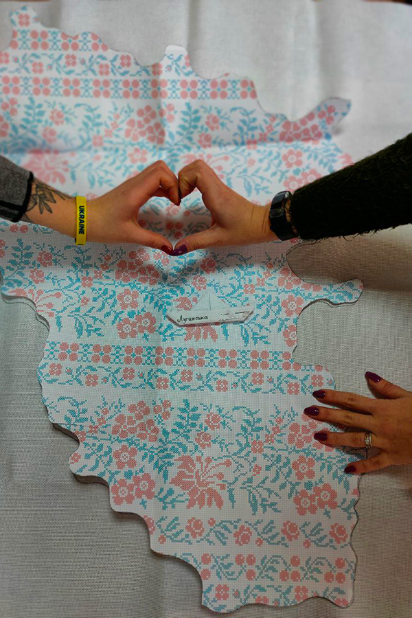 Мапа Луганської області із автентичним візерунком увійде до вишитої мапи України, розмір якої сягатиме 3м х 5м з оздобленою рамою майже 7 км ниток різних кольорів, яка буде передана до Верховної Ради України.