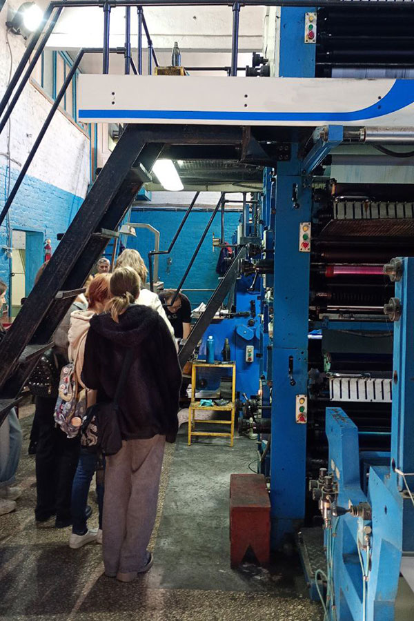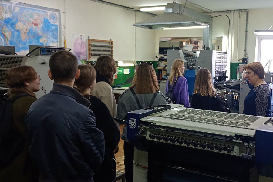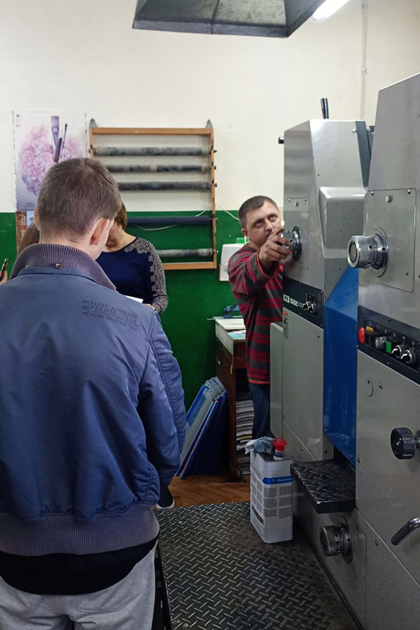 Під час екскурсії здобувачі вищої освіти змогли ознайомитись з виробничими друкарськими потужностями, із усіма основними складовими сучасної друкарської справи та наочно побачили випуск поліграфічної продукції. Були показані основні технологічні процеси пов’язані із офсетним друком – виготовлення пластин, їх підготовка, нанесення фарби, та сам процес друку. Також були продемонстровані етапи зшивання та обрізування друкованої продукції.