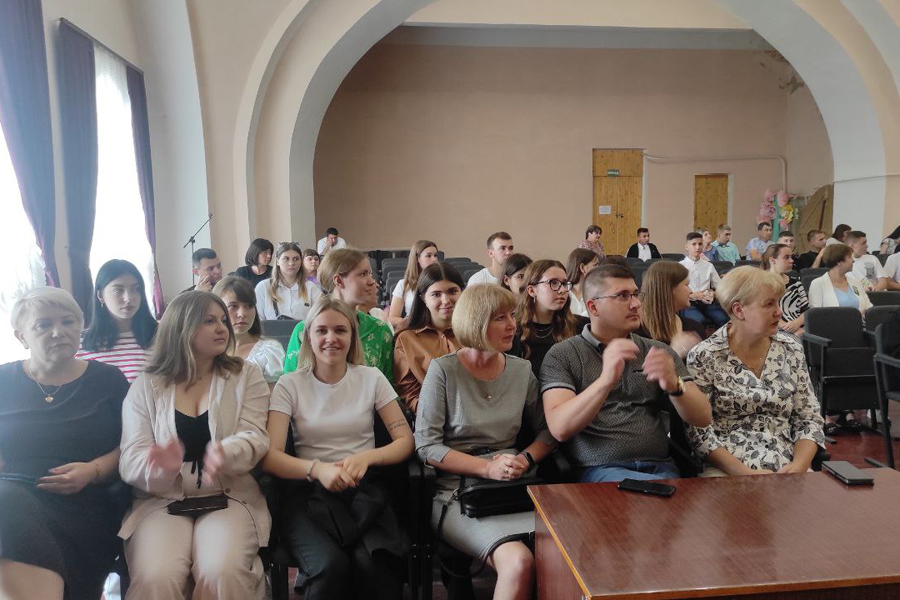 Зустріч розпочав вітальною промовою до здобувачів вищої освіти голова вченої ради університету Віталій КУРИЛО, який побажав успіхів у навчанні, відкриттів і нових досягнень. «Вперше в новітній історії нашої держави молоді люди стають студентами в умовах воєнного стану. Пам’ятаймо, що ми можемо розпочати навчальний процес завдяки нашим колегам, завдяки Збройним силам України, які зараз боронять незалежність України від російського агресора. Перемога буде за нами!», – наголосив Віталій Семенович.