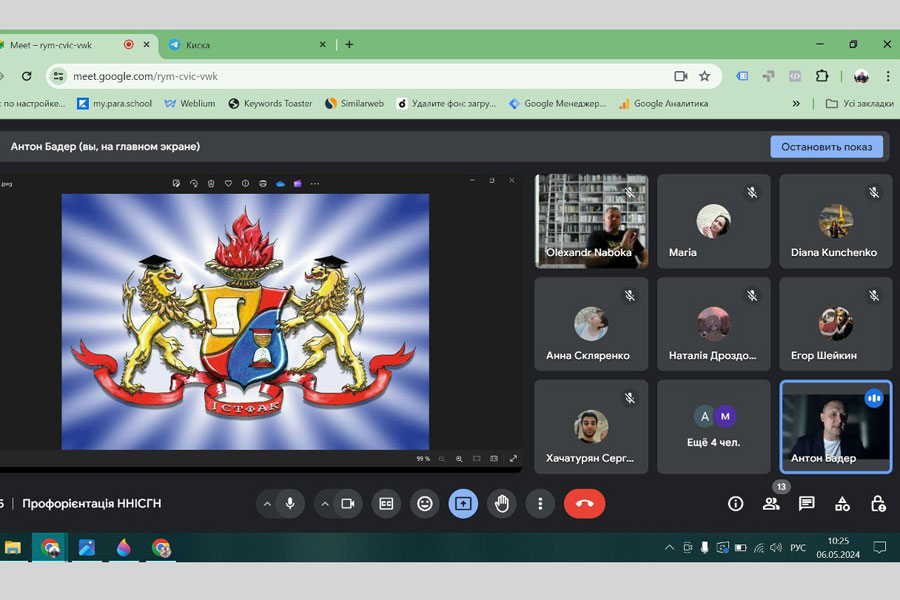 На цей раз керівництво Інституту та кафедри історії та археології зустрілося онлайн з учнями-одинадцятикасниками Сіверськодонецького Ліцею «Інітіум». Ініціатором та розпорядником заходу черговий раз виступив д.і.н., професор, завідувач кафедри історії та археології Олександр Набока. Він подякував керівництву та учням навчального закладу за активно співробітництво із Інститутом.