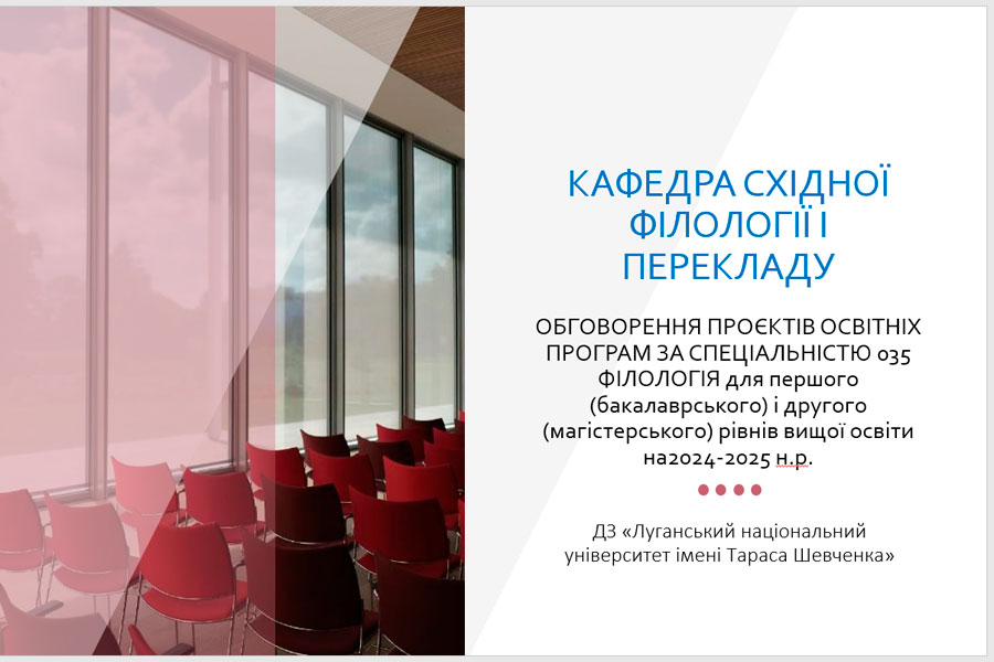 02.04.2024 відбулося засідання, на якому обговорювалися питання внесення змін до проєктів освітніх програм, які реалізуються на кафедрі східної філології і перекладу. Гаранти освітніх програм Перова С.В. («Переклад (Англійська та друга іноземна мова (китайська))»), Перепадя Д.О. («Мова і література (китайська, англійська)») та Малахова Ю.В. («Мова і література (японська, англійська)») представили колегам пропозиції щодо змін, які можуть допомогти удосконалити їх ОП та покращити якість навчання.