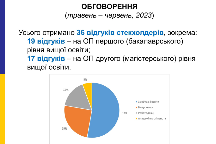 Учасниками розширеного засідання кафедри були гаранти ОП та члени проєктних груп, внутрішні та зовнішні стейкхолдери. Зокрема, у заході взяли участь представники КНП «Кремінська багатопрофільна лікарня Кремінської міської ради», КП «Лубенська лікарня інтенсивного лікування» Лубенської міської ради, Лубенського міського центру комплексної реабілітації дітей з інвалідністю, санаторію «Славутич» ім. Б.В. Пашковського тощо. Присутні на засіданні стекхолдери високо оцінили освітні програми, зазначивши, що вони «повністю відповідають стандартам вищої освіти», «є логічними та послідовними», «складені грамотно і професійно» та «можуть бути впроваджені в освітній процес»; пропозицій і зауважень не висувалось.
