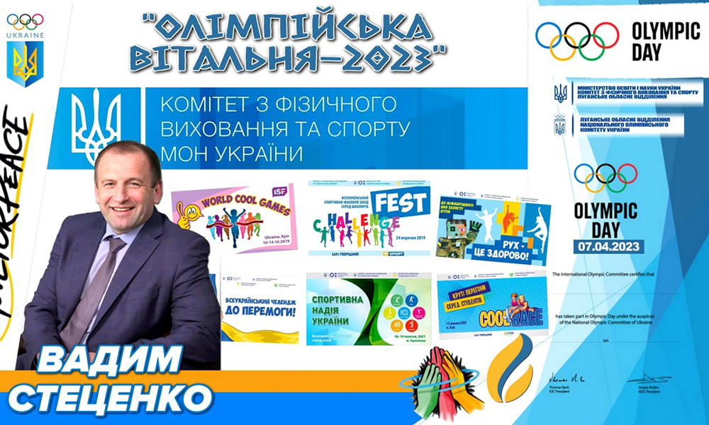 07 квітня 2023 року здобувачі вищої освіти навчально-наукового інституту фізичного виховання і спорту взяли участь в онлайн проєкті «ОЛІМПІЙСЬКА ВІТАЛЬНЯ 2023»! Гостем заходу був Вадим Григорович Стеценко - голова Комітету з фізичного виховання та спорту Міністерства освіти і науки України, генеральний секретар Спортивної студентської спілки України та Української федерації учнівського спорту.
