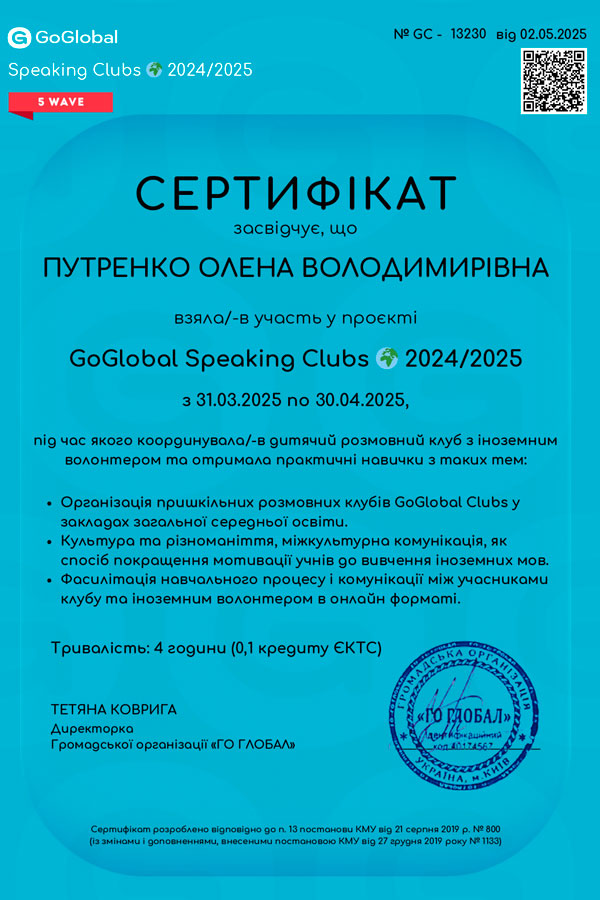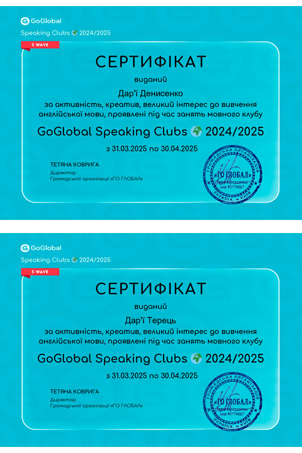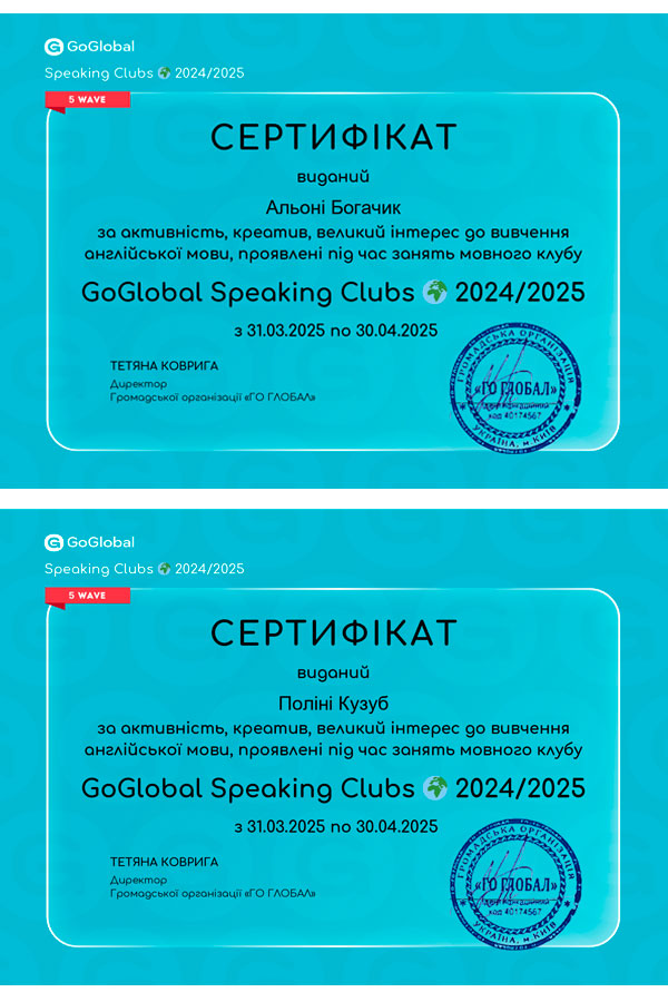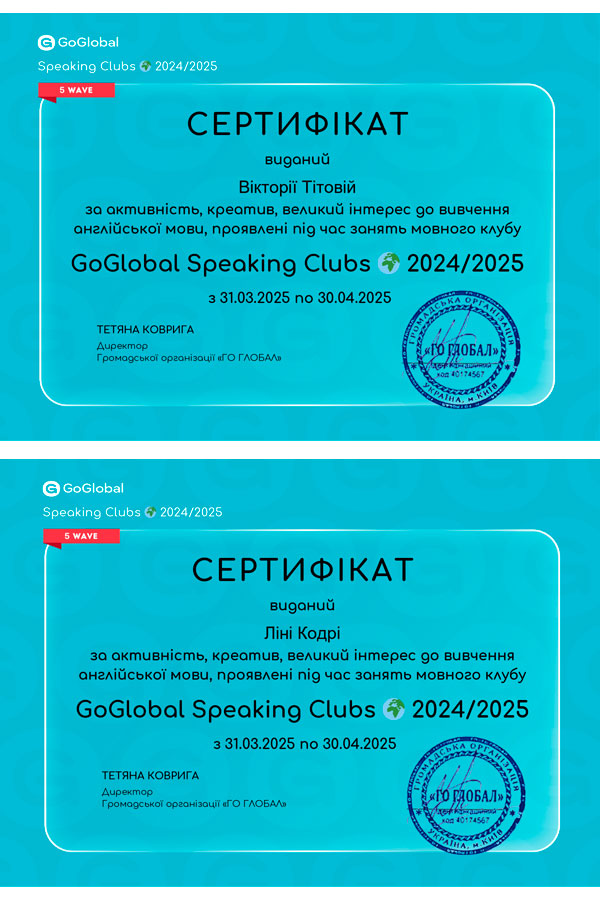 Підсумовуючи, хочу відзначити, що онлайн-курси англійської мови #GoGlobal стали успішним та корисним проєктом для студентів нашого коледжу. Це був не лише процес передачі знань, але й можливість для міжкультурного обміну та особистісного зростання. Я пишаюся досягненнями своїх студентів та вдячна Alice за її неоціненний внесок. Сподіваюся на подальшу плідну співпрацю з #GoGlobal, щоб і надалі відкривати для наших студентів світ англійської мови.