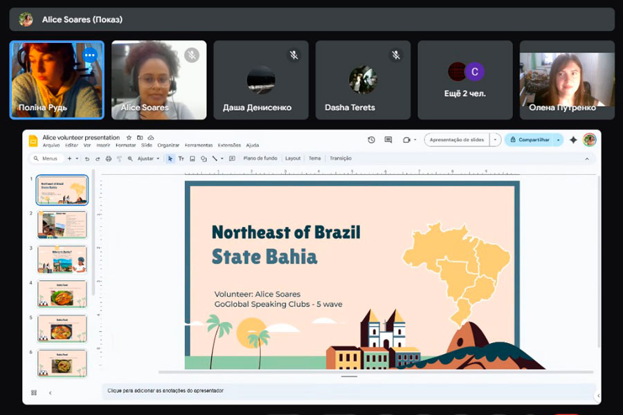 Сьогодні онлайн-навчання відкриває нові можливості для освіти, стираючи географічні кордони. Для нас стало справжнім задоволенням та цінним досвідом проведення онлайн-курсів англійської мови для наших студентів у співпраці з ініціативою GoGlobal та чарівною волонтеркою з Бразилії, Alice.