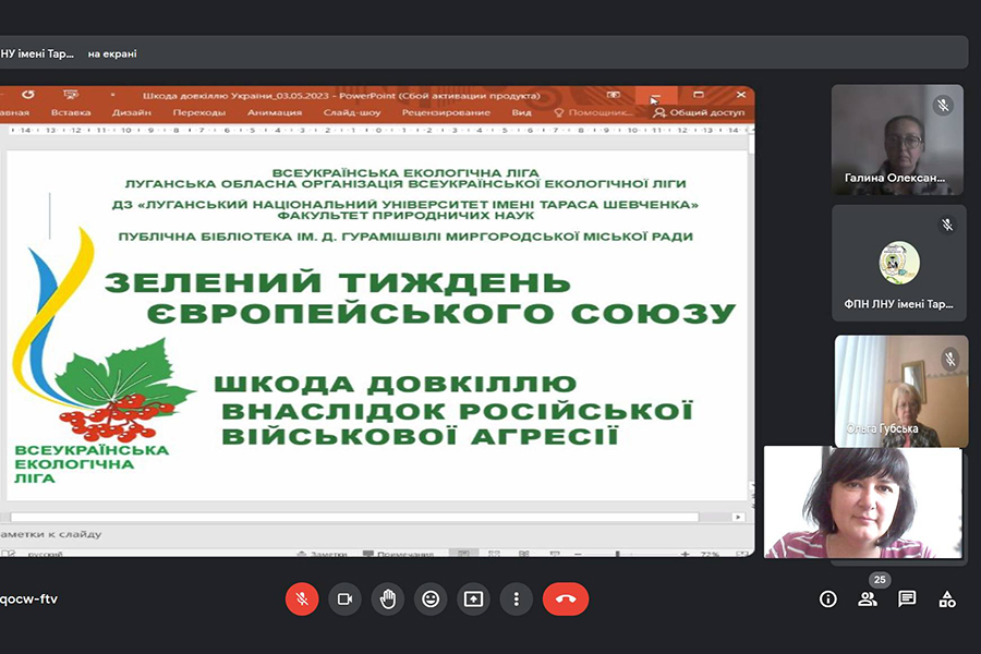 У рамках заходів «Зеленого тижня ЄС» Всеукраїнської екологічної ліги у м. Миргород Полтавської області 7 червня було проведено онлайн презентацію освітньо-наукових матеріалів «Щодо збитків завданих довкіллю України (Луганська та Полтавська області)».