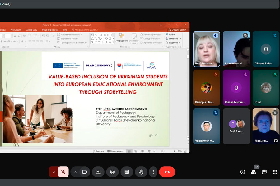 З метою занурення здобувачів у міжкультурний контекст спілкування онлайн-захід було проведено англійською мовою. Було обговорено питання: розуміння викликів та можливостей, пов’язаних із ціннісним залученням українських здобувачів до європейського освітнього середовища; рекомендації для освітян щодо використання технології Storytelling для міжкультурного взаєморозуміння, збереження української ідентичності; практичні рекомендації для українських здобувачів для підтримки їхньої культурної адаптації та інтеграції в європейський освітній простір. Здобувачі активно залучилися до обговорення матеріалів заходу.