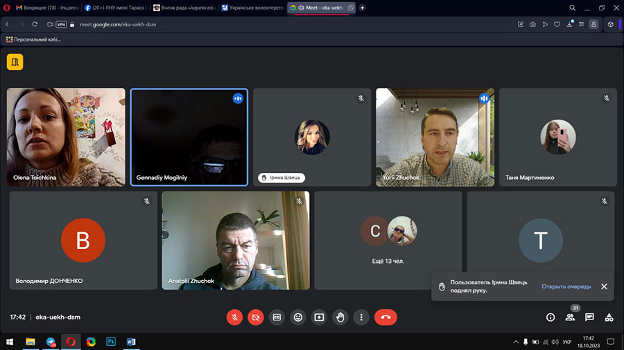 18 жовтня 2023 року відбулася запланована онлайн-зустріч з магістрами освітньої програми «Математика» в фокус-групі разом зі структурними підрозділами Луганського національного університету імені Тараса Шевченка.