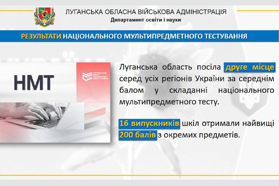 Нагадаємо, учні Луганщини зайняли друге місце серед усіх регіонів країни за середнім балом у складанні національного мультипредметного тесту.