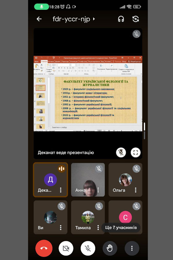 Науково-педагогічні працівники кафедри української та зарубіжної літератури факультету української філології та журналістики провели зустріч із здобувачами освіти 1 курсу спеціальностей «Середня освіта. Українська мова та література» і «Середня освіта. Українська мова та література. Мова і література (англійська)» другого магістерського рівня. Модерував зустріч старший лаборант кафедри Дмитро Помазан. Завідувачка кафедри Ольга Крижановська познайомила магістрантів із науковими керівниками, схарактеризувала особливості навчальних програм. Заступника декана факультету української філології та журналістики Ірина Бойцун презентувала історію факультету і особливості навчального процесу в магістратурі. Професор Вікторія Дмитренко розповіла про свою наукову школу, окреслила напрямки магістерських досліджень. Світлана Негодяєва познайомила магістрантів із власними науково-методичними здобутками і презентувала тематику магістерських робіт. Науково-педагогічні працівники кафедри української та зарубіжної літератури дали повні відповіді на питання магістрантів.