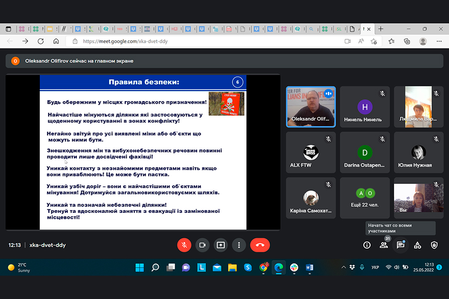 Питання безпеки поводження з вибухонебезпечними предметами наразі є надзвичайно актуальним та обумовлено надзвичайною актуальністю ризиків пов’язаних із виявленням невідомих предметів та інформуванням шевченківців щодо правил поведінки у разі знаходження мін та вибухонебезпечних предметів. Так, фахівець зі зв’язків із військовими CIVIC, кандидат технічних наук Олександр Оліфіров поглибив знання здобувачів освіти та викладачів університету щодо правил поводження з вибухонебезпечними предметами та речовинами.