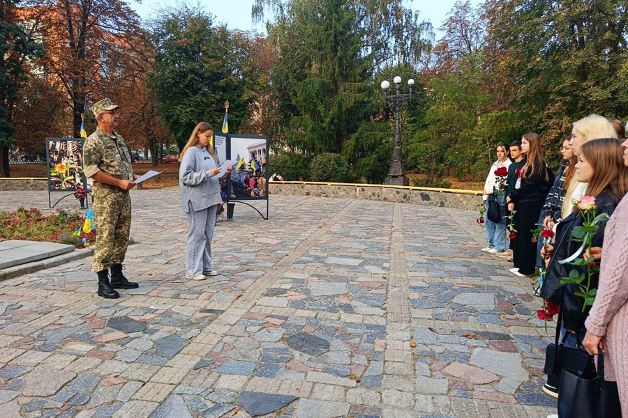Хвилиною мовчання і квітами коледжани вшанували всіх тих, хто віддав своє життя у двобої з рашизмом.