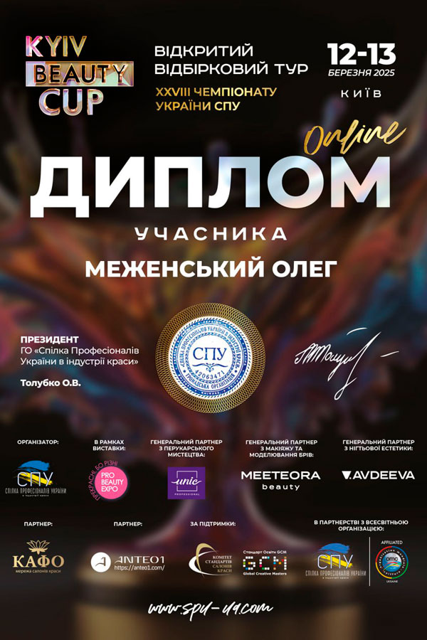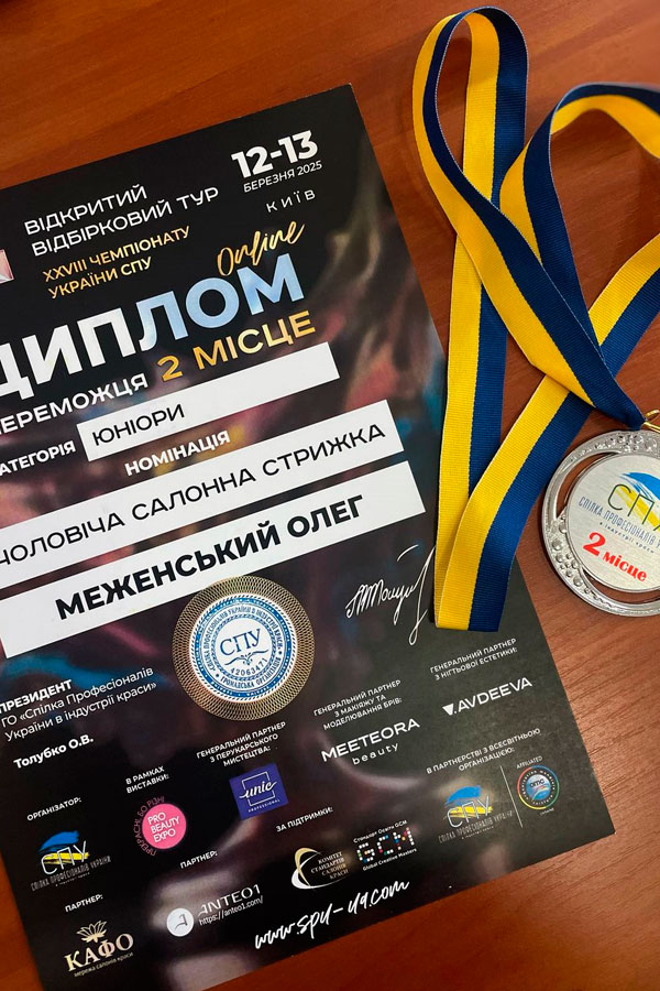 12-13 березня 2025 року Олег здобув ІІ місце в категорії ЮНІОРИ, номінація ЧОЛОВІЧА САЛОННА СТРИЖКА.