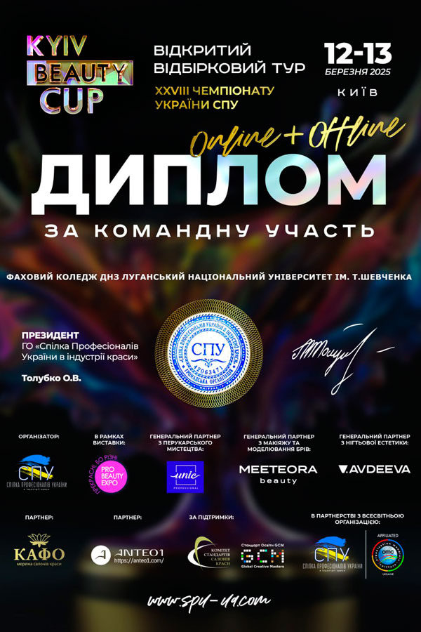 Результатом такої роботи є участь та зайняте ІІ місце у відкритому відбірковому турі XXVIII ЧЕМПІОНАТУ УКРАЇНИ СПІЛКИ ПРОФЕСІОНАЛІВ УКРАЇНИ в індустрії краси, Меженського Олега, студента 4 курсу, спеціальності Дизайн (перукарське мистецтво та декоративна косметика).