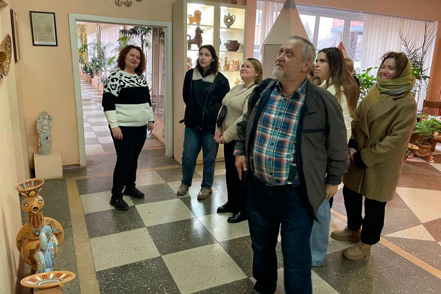 Також директоркою ліцею Людмилою Овчаренко для викладачів та здобувачів освіти НН ІМ була проведена екскурсія в стінах колегіуму, в якому окрім звичайних предметів, вивчають гончарство, живопис, скульптуру, технологію кераміки, основи технічного рисунку та багато інших мистецьких предметів.