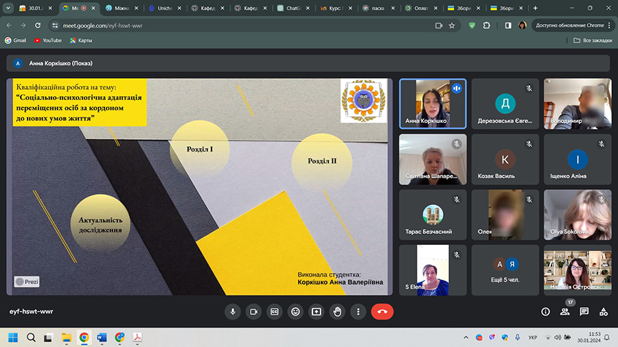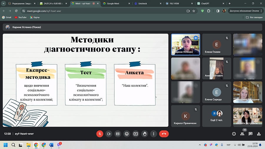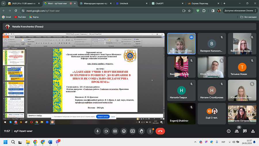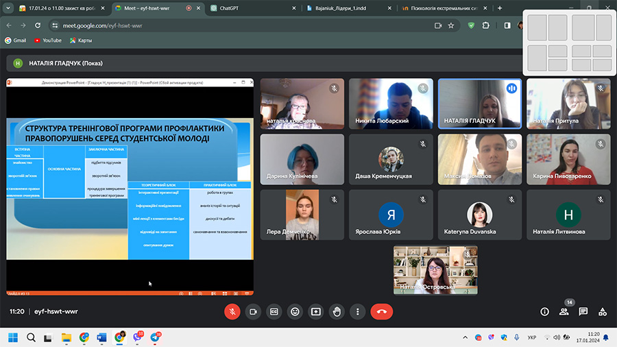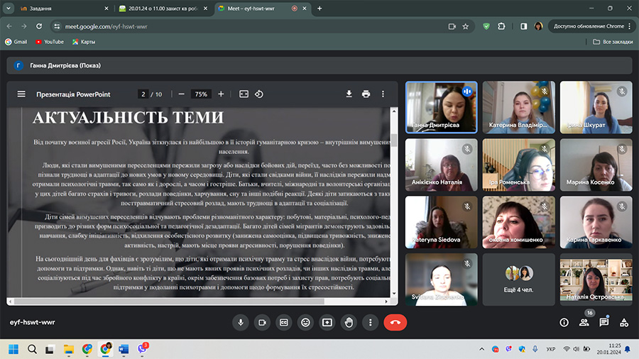 З 16 січня по 31 січня 2024 р. у навчально-науковому інституті педагогіки і психології відбулася підсумкова атестація здобувачів другого (магістерського) рівня вищої освіти спеціальності 231 «Соціальна робота» за освітньою програмою «Соціальна робота. Соціальна педагогіка. Практична психологія» денної та заочної форм навчання.