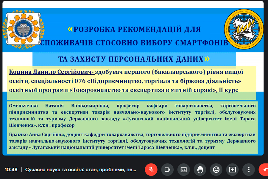 21 березня у форматі доповіді-дискусії активно долучилися здобувачі освіти спеціальності 076 «Підприємництво, торгівля та біржова діяльність». Змістом тематичних напрямів кафедри товарознавства, торговельного підприємництва та експертизи товарів був розгляд питань пов’язаних із теоретичним та практичним розвитком підприємництва, управління безпечністю та якістю товарів і послуг, а також митного регулювання ринку товарів та послуг.