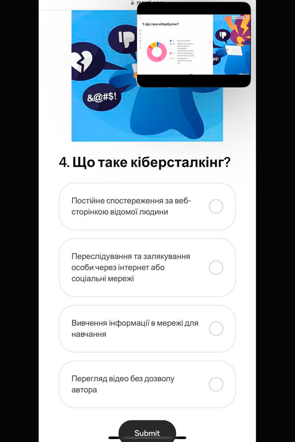 Мета заходу:нагадати про важливість безпеки у цифровому світі та навчитися захищати себе від кібернасильства.