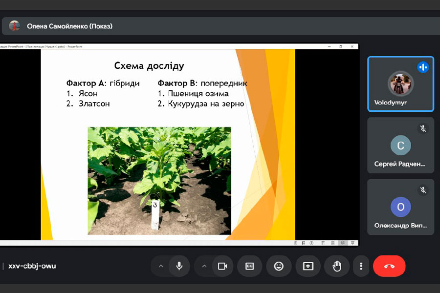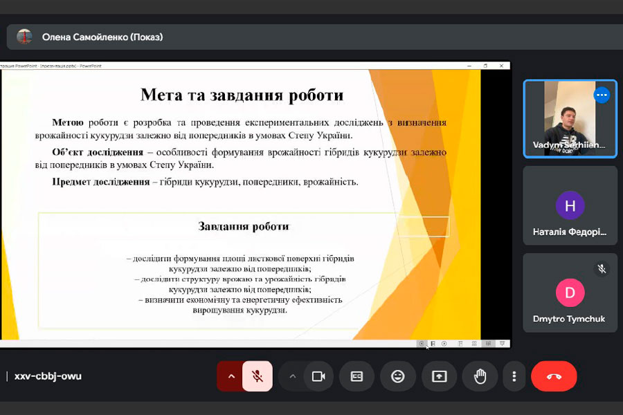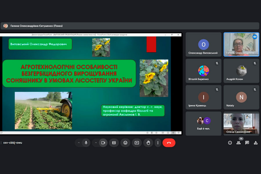 Під час презентації результатів своїх наукових досліджень, здобувачі освіти ретельно обґрунтували актуальність обраних тем, розкрили сутність польових та лабораторних досліджень за обраною тематикою, проаналізували результати. В ході обговорення презентацій, наукові керівники, викладачі кафедри зосередили увагу на окремих моментах оформлення, подачі матеріалу; поясненням певних результатів досліджень і надали поради з вдосконалення доповідей та презентацій робіт.