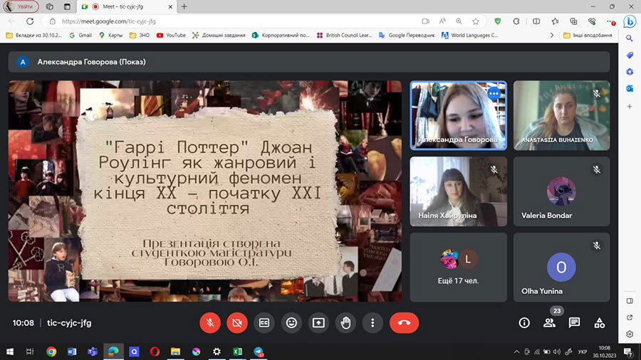 30 жовтня 2023 року на кафедрі романо-германської філології з метою вдосконалення студентських наукових праць та підготовки до їх захисту у дистанційному форматі відбувся попередній захист магістерських робіт здобувачами денної та заочної форм навчання.