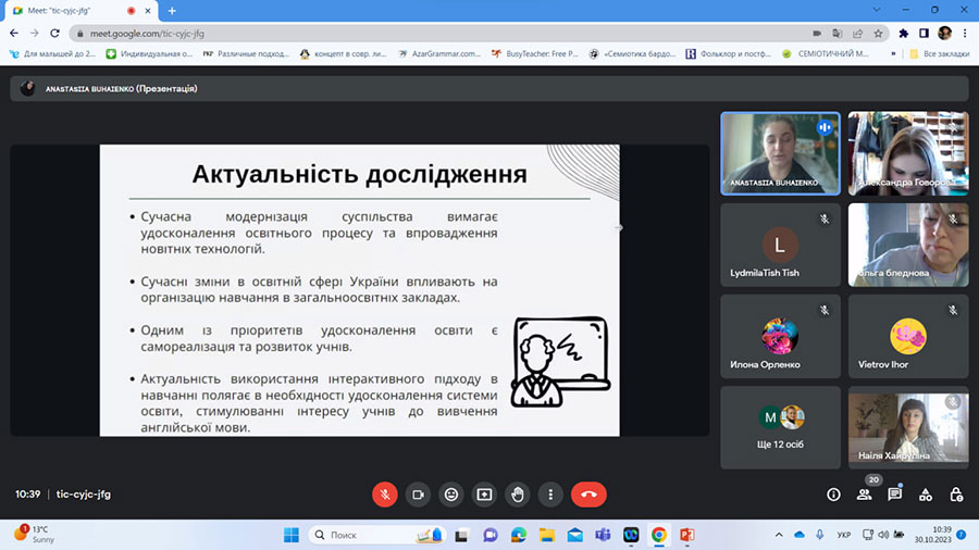 В.о. завідувача кафедри Наіля Фаритівна Хайруліна звернулася з вітальним словом до всіх присутніх, зауважила на важливості своєчасного завершення написання магістерських робіт, побажала успіхів і натхнення у завершенні навчання та закликала до дискусійного формату зустрічі.