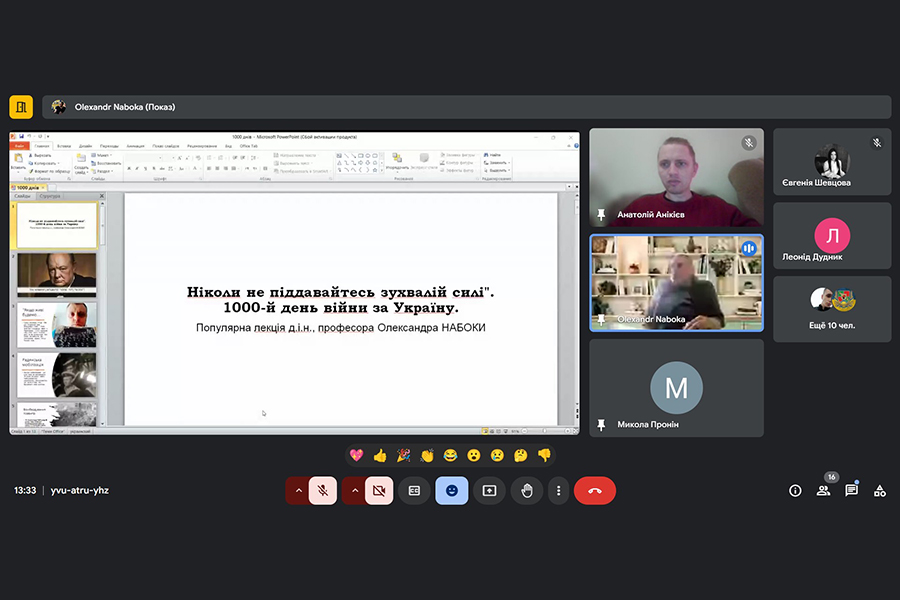 Сьогодні доктор історичних наук, професор, завідувач кафедри історії та археології ДЗ «Луганський національний університет імені Тараса Шевченка» Олександр Набока провів науково-популярну лекцію «Ніколи не піддавайтесь зухвалій силі. 1000-й день війни за Україну». Учасниками заходу були викладачі та студенти інституту соціальних і гуманітарних наук.