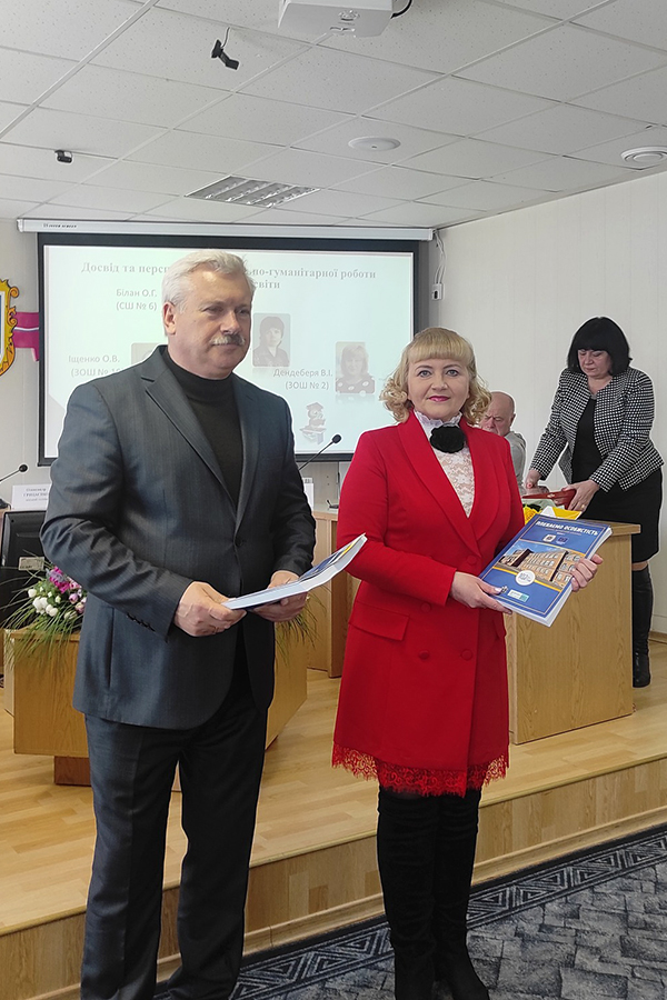 Після неї виступила диретор Лубенської спеціалізованої школи І-ІІІ ступенів №6 Лариса ДЕРКАЧ, яка долучилася до створення цього проєкту і який став для неї першим таким досвідом. Щиро подякувала університету та особисто Олені КАРАМАН і зазначила, що з появою Луганського національного університету імені Тараса Шевченка зросла для всіх кількість освітніх можливостей і вже навіть студенти ЛНУ проходять практику у їхній школі.