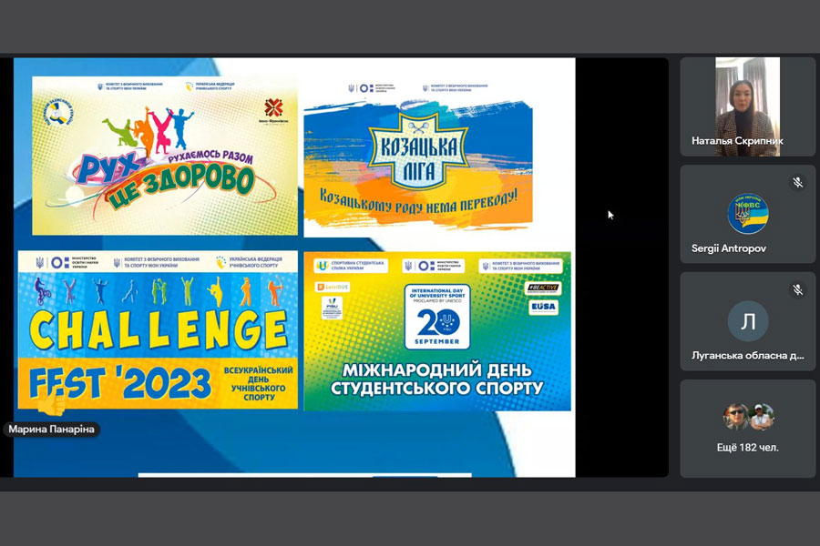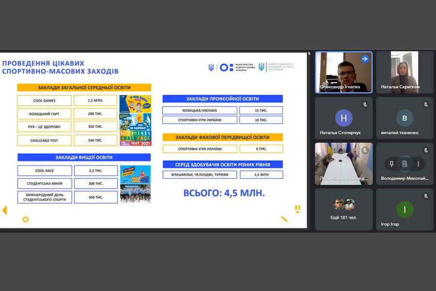 Далі фахівців та працівників освітньої галузі ознайомили з новим обласним фізкультурно-оздоровчим онлайн заходом серед учнівської молоді «Учнівська ліга Луганщини» (доповідач головний спеціаліст Луганського обласного відділення (філії) КФВС МОН України Володимир Пархомович).