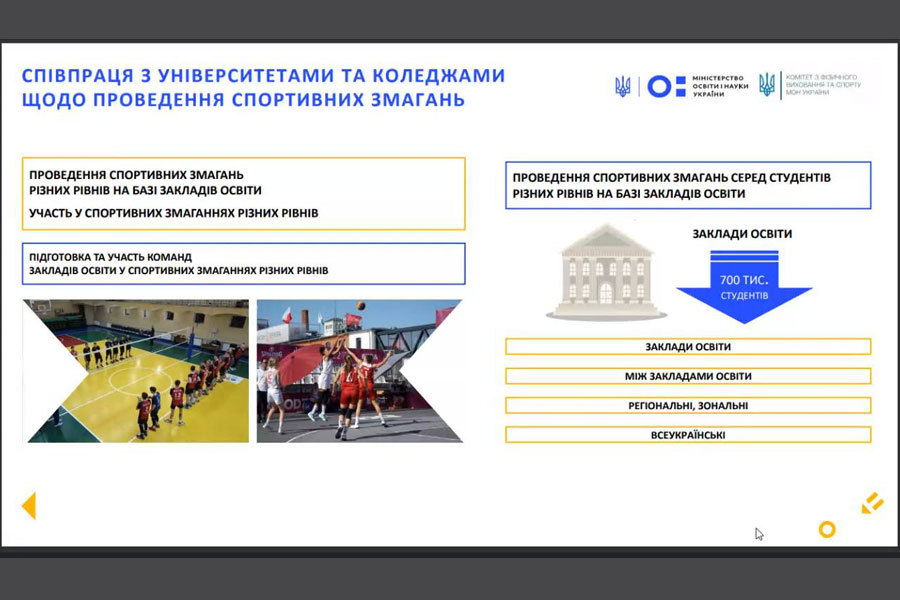 Під час заходу обговорено проведення Всеукраїнських спортивних і спортивно-масових заходів серед здобувачів освіти «Пліч-о-пліч» за підтримки Президента України.