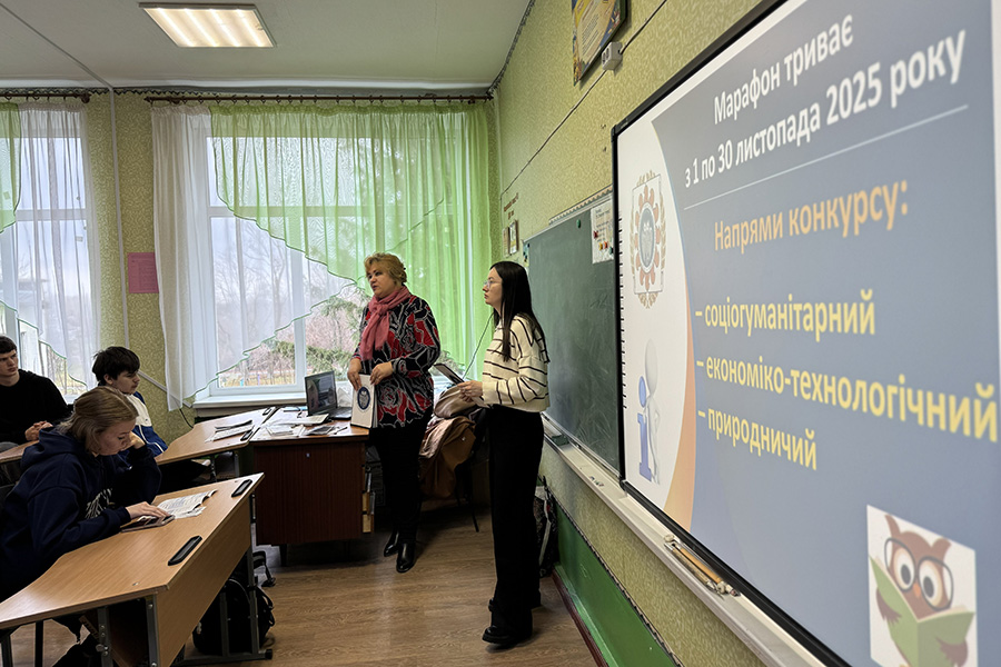 Представниці ЛНУ ознайомили школярів з освітніми програмами університету, структурою навчально-наукових інститутів, умовами вступу, можливостями академічної мобільності, міжнародних стажувань і подальшого працевлаштування. Окрему увагу приділили перевагам Марафону для закладів освіти, педагогів і самих учасників: сертифікатам, відзнакам, заохочувальним призам та можливості отримати знижку на навчання для переможців і призерів.