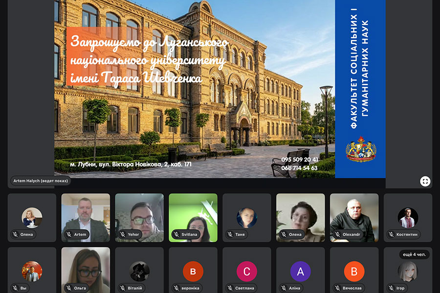 10 квітня факультет соціальних і гуманітарних наук продовжив профорієнтаційну роботу, цього разу – в онлайн-форматі для здобувачів освіти Старобільського фахового коледжу. Захід став черговим важливим кроком у налагодженні комунікації з майбутніми вступниками та ознайомленні молоді з освітніми можливостями факультету.