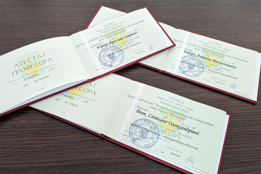 Відповідно до наказів Міністерства освіти і науки України, на підставі рішення Атестаційної колегії Міністерства в Державному закладі «Луганський національний університет імені Тараса Шевченка» присвоєно вчені звання Професора: