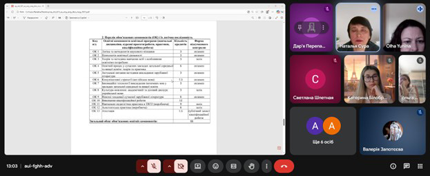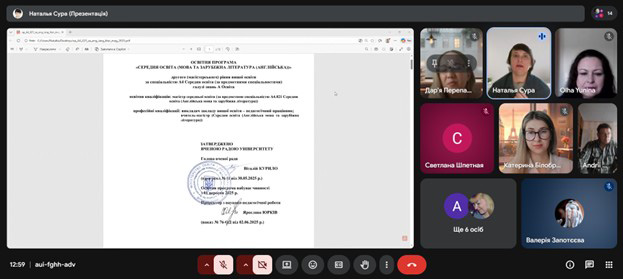 Під час зустрічі було представлено освітню програму спеціальності А4.021 Середня освіта. Англійська мова та зарубіжна література і спеціальності В11 Філологія B11.041 Германські мови та літератури (переклад включно), перша англійська, B11.043 Германські мови та літератури (переклад включно), перша – німецька.
