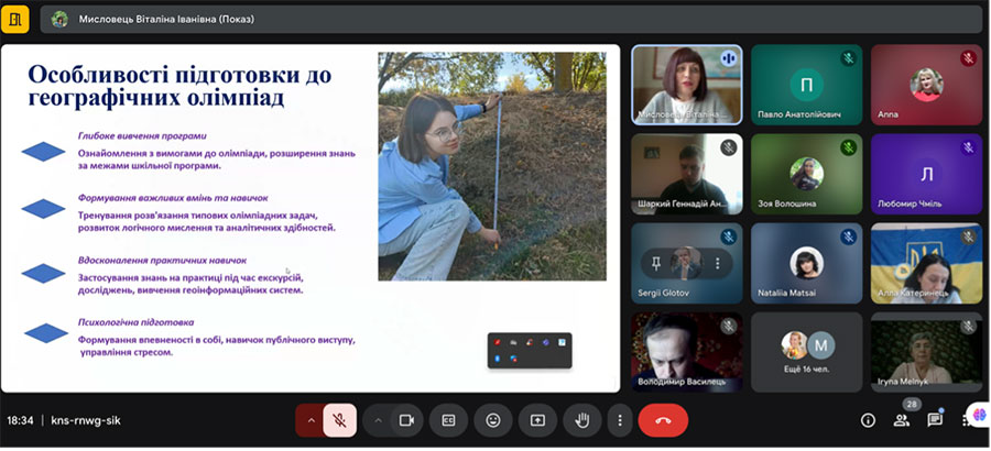 Окремий блок питань стосувався організації навчального процесу та оцінювання. Учителі-практики Віталіна Мисловець, Тетяна Левтюх та Світлана Карпенко презентували свій досвід роботи з обдарованими учнями, впровадження проєктної діяльності та організації екологічних ініціатив. Здобувачі освітнього ступеня «магістр» ЛНУ імені Тараса Шевченка Богаславська Світлана та Новіков Дмитро представили свої дослідження щодо формувального оцінювання та групової роботи на уроках географії, пропонуючи практичні інструменти для підвищення ефективності навчання.