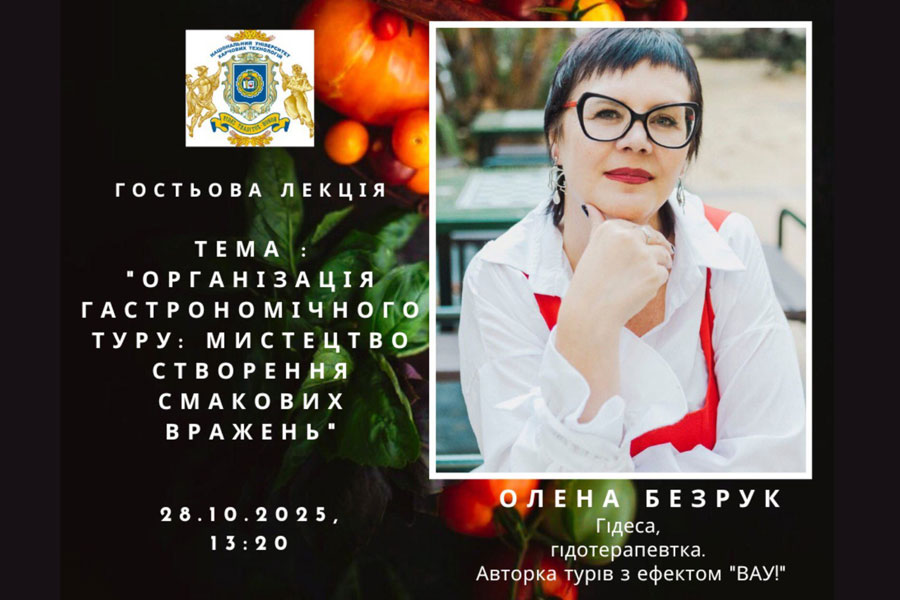28 жовтня 2025 року на кафедрі професійної освіти, ресторанного і туристичного бізнесу відбулася ексклюзивна подія для здобувачів вищої освіти та викладачів, які прагнуть створювати якісний та автентичний туристичний продукт. У рамках освітніх програм кафедри відбулася гостьова лекція на тему: «Організація гастрономічного туру: мистецтво створення смакових вражень».