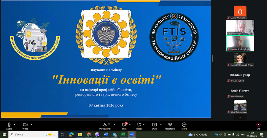 9 квітня 2026 року кафедрою професійної освіти, ресторанного і туристичного бізнесу факультету технологій та інформаційних систем Державного закладу «Луганський національний університет імені Тараса Шевченка» був проведений семінар «Інновації в освіті».