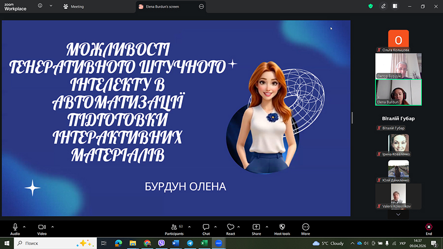 Тема доповіді «Можливості генеративного штучного інтелекту в автоматизації підготовки інтерактивних матеріалів»;