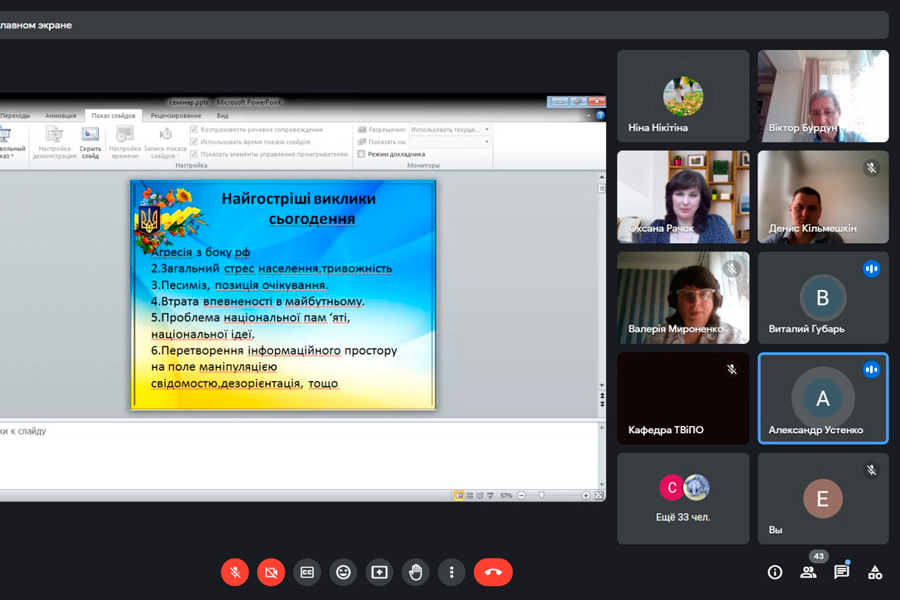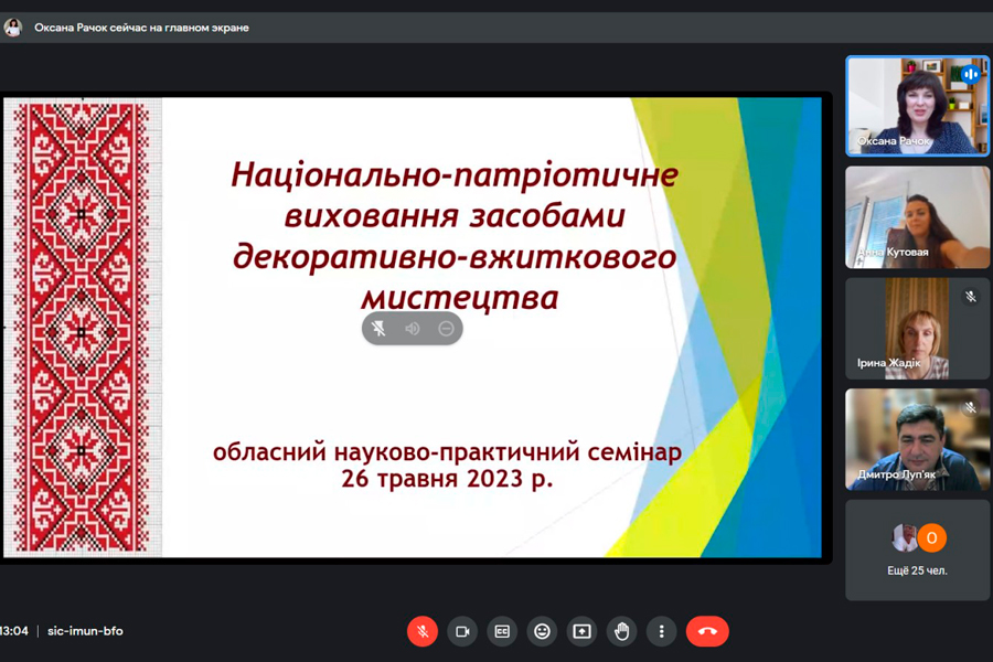Завершував роботу семінару виступ Нікітіної Ніни – заступника з НВР, вчителя технологій, Попаснянського ліцею №25 Попаснянської міської територіальної громади Сєвєродонецького району Луганської області. Вона акцентувала увагу на необхідності проведення національно-патріотичного виховання учнів ЗЗСО і розповіла про безліч заходів, які вона провела з національно-патріотичного виховання саме на уроках трудового навчання і технологій під час перебування в евакуації. Виступ був дуже потужним і емоційним. Пані Ніна організувала віртуальні екскурсії музеями України, в тому числі і у музей писанки у м. Коломия, ініціювала цікаві дослідження з патріотичного виховання, розповіла про знайомство з Лесею Воронюк, яка у 2006 році будучи студенткою факультету історії, політології та міжнародних відносин Чернівецького національного університету імені Юрія Федьковича ініціювала проведення акції «Всесвітній день вишиванки», що потім стало державним святом, яке щороку третього травневого четверга відзначають українці.