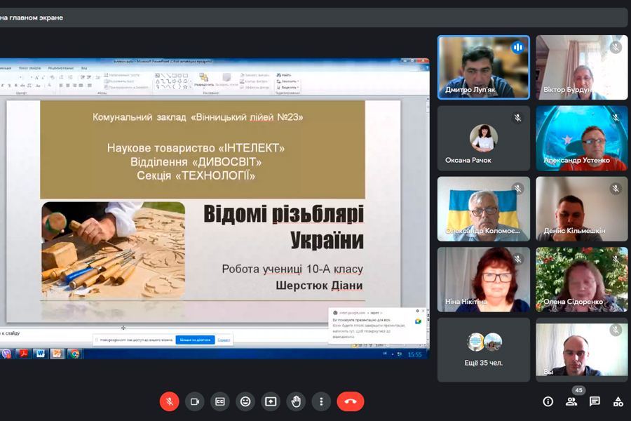 Четвертим спікером був Луп’як Дмитро – учитель трудового навчання та технологій комунального закладу «Вінницький ліцей №23», «учитель-методист», «Заслужений вчитель України», переможець конкурсу «Вчитель року - 2021». Виступ Дмитра очікували усі учасники семінару. Тому всі, затамувавши подих, слухали про педагогічний досвід Дмитра, його методичні і практичні наробки, про історію створення мабуть найкращої в Україні майстерні. Дмитро познайомив учасників семінару зі своїм блогом, який налічує безліч цікавої і корисної інформації для вчителя. Також він поділився досвідом роботи під час карантину. Особливу увагу він приділив проєктам на національну тематику, які були виконані його учнями. Учасники семінару відзначили вмотивованість учнів пана Дмитра і високий рівень їхньої виконавської майстерності. Також, зазначили талант, високий рівень творчості і працездатність Дмитра Луп’яка.