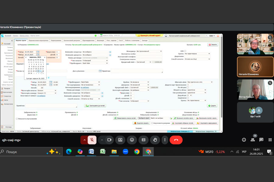 26 вересня 2025 року викладачі кафедри професійної освіти, ресторанного і туристичного бізнесу ДЗ «Луганський національний університет імені Тараса Шевченка» та коледжу ВСП «Фаховий коледж ДЗ «ЛНУ імені Тараса Шевченка» взяли участь у навчальному тренінгу, організованому компанією ТОВ «Сервіо Софт», провідним розробником програмного забезпечення для автоматизації підприємств сфери гостинності. Захід був присвячений вивченню функціоналу модуля Servio HMS (Hotel Management System) — інноваційного інструменту для управління готельними комплексами, ресторанами та супутніми сервісами.